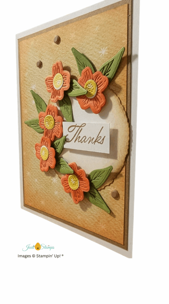 By the end, this fall floral design shows exactly why switching your palette is such a powerful tool. The Impressions Abloom Bundle became a cozy autumn arrangement, the Deckled Circle Dies added texture, and the Neutral Matte Dots tied it all together with a touch of subtle detail.