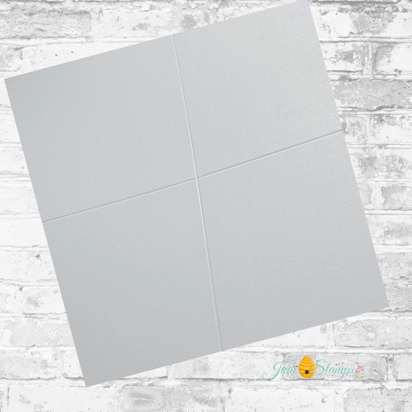 I start with a piece of cardstock cut to 7 ½” x 10″. This gives me gives plenty of room to design a full background. Before stamping anything, I lightly score the cardstock down the center- in both directions. These score lines act as a visual guide and make it much easier to keep the stamping balanced across the entire panel.
